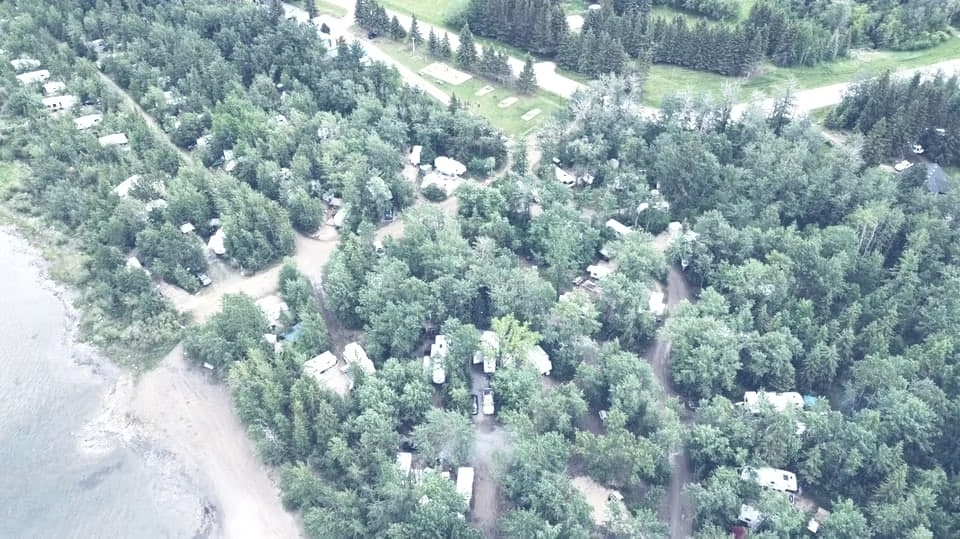 The campground, originally developed by the Lacombe Fish and Game Association in the 1950s, has maintained much of its original layout, offering nearly 90 sites across wooded and lakefront areas.