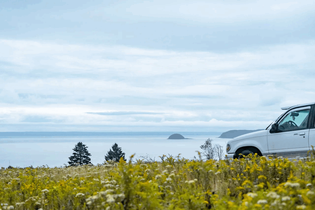 The 400-acre property overlooks the Bay of Fundy and offers an off-grid experience across three distinct sites for RVs and tents.