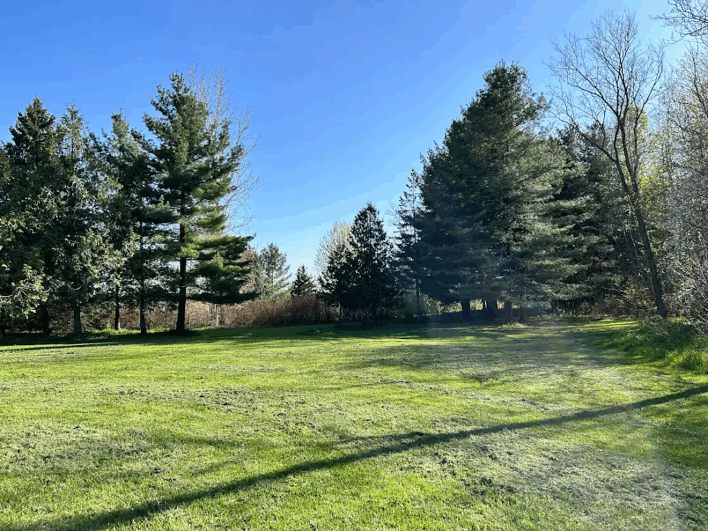 The owners describe the location as quiet and pet-friendly, noting that three dogs freely roam the grounds and often greet arriving guests. The property offers multiple camping areas that vary in privacy, amenities, and accessibility.