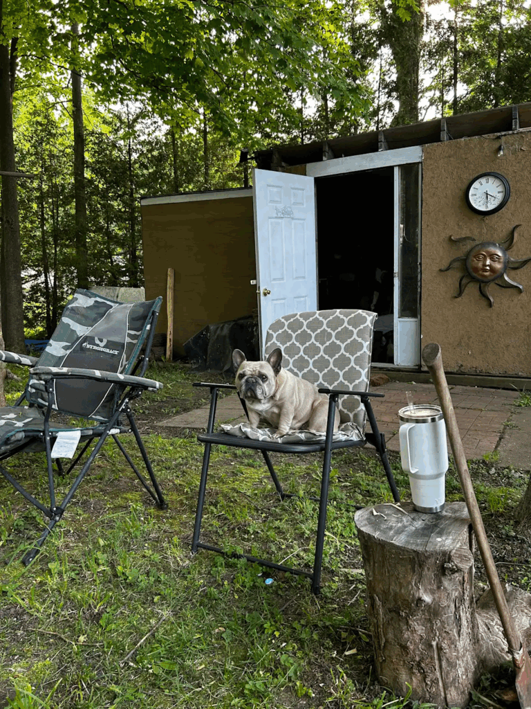 “Sugar Shack Shanty,” an off-grid bunkie with fenced outdoor space, includes modern amenities like electricity, Wi-Fi, a microwave, and an air fryer.