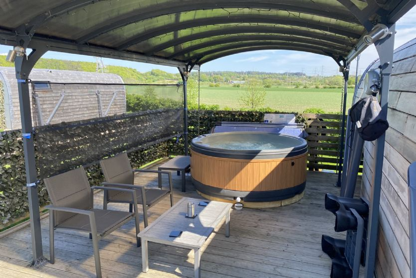 The site is located three miles from Alloa, where the nearest train station and major supermarkets are found. Edinburgh Airport is approximately 24 miles away, positioning the pod within convenient travel distance for domestic and international guests.