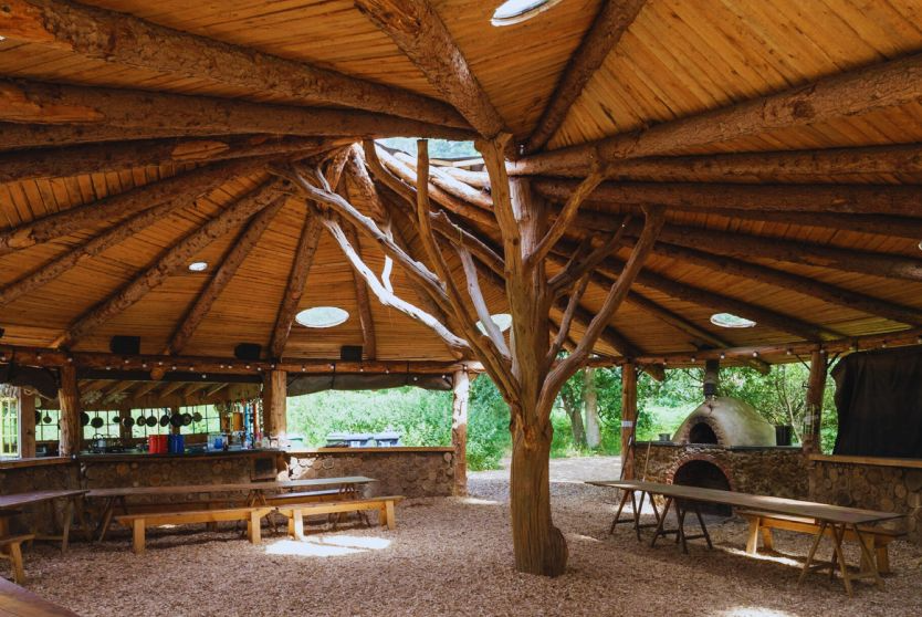 Set in acres of mature woodland, Bradmoor Woods provides what its operators describe as an “authentic woodland camping” experience. The heart of the site, known as The Round House, serves as a communal area equipped with a shared kitchen, pizza oven, and solar-powered lighting.