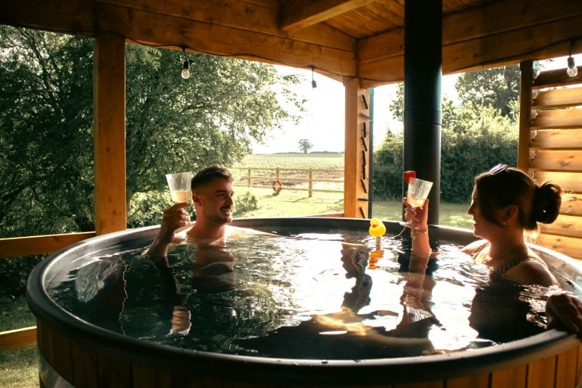 Outdoor facilities include a private wood-fired hot tub with logs provided, as well as seating for two on the decking. WiFi is available in the communal areas of the site, but not directly in or around the lodge.