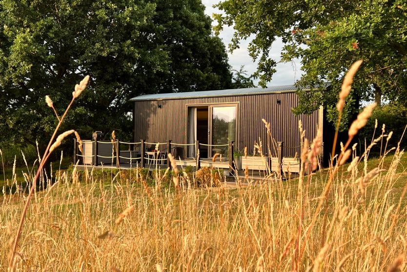 Molly, one of three luxury shepherd’s huts at Top Farm in Marsham, Norfolk, offers guests a modern glamping experience that blends comfort with a connection to nature.