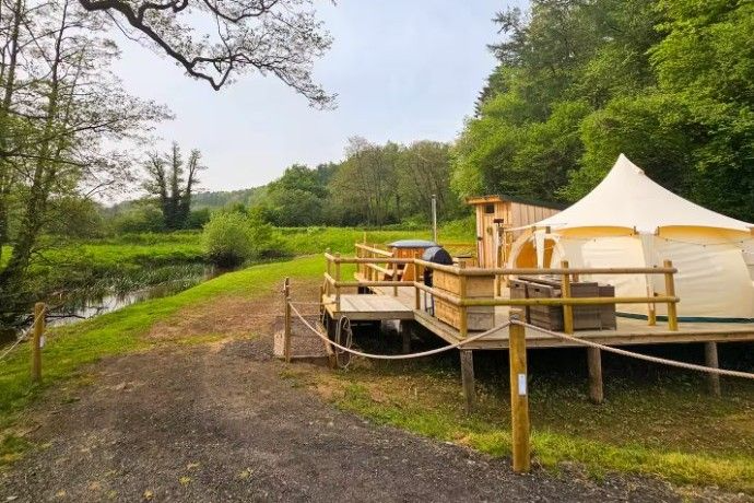 Tucked along the River Roden in Aston, Shropshire, Roden Retreat offers guests a bell tent glamping experience designed for privacy and immersion in nature. Situated on six acres of private land, the property provides space for exploration while maintaining the comforts expected from high-end outdoor stays.