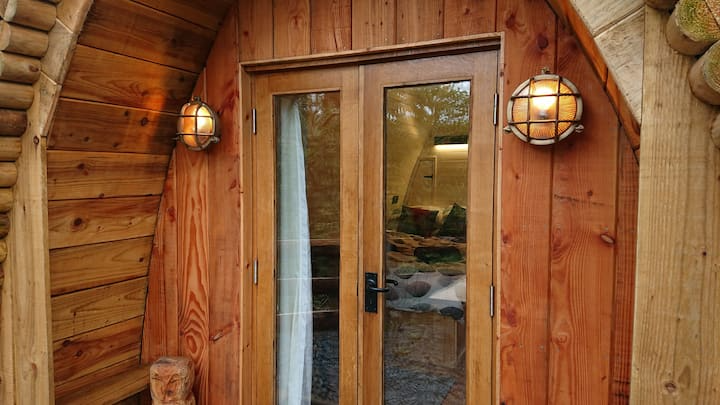 The property features eight different accommodation types, each converted from former farm buildings or newly built structures. Options include log cabins, shepherd’s huts, traditional cottages, and themed retreats.