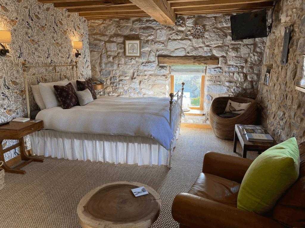 Each accommodation reflects the surrounding countryside, with private bathrooms, comfortable beds, and outdoor seating areas.