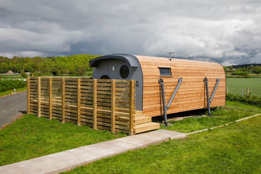 White Wisp is a pod-style glamping accommodation located at Highland Gateway Glamping, positioned between the villages of Clackmannan and Kincardine in central Scotland. The unit operates as an adults-only, dog-free accommodation and is designed to accommodate two guests.