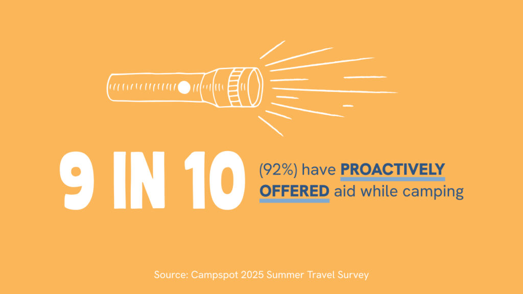 Furthermore, 73% have experienced an act of kindness from a fellow camper, and 92% have paid it forward. 83% of respondents said they feel like a better version of themselves at a campground.
