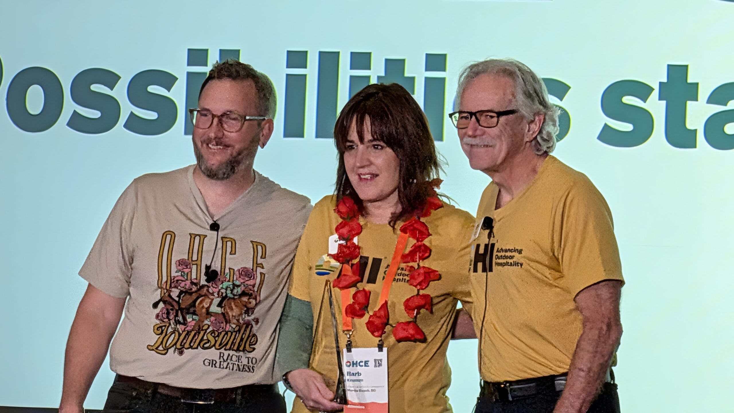 Mike Harrison received the Outdoor Hospitality Industry Leadership Award for his ongoing contributions to advancing best practices and fostering collaboration across the sector.