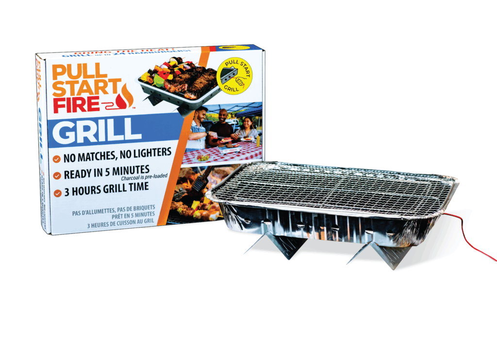 The Pull Start Fire Grill builds on the company’s success with its pull-string fire starter, offering consumers a ready-to-use option that requires no setup or cleanup.