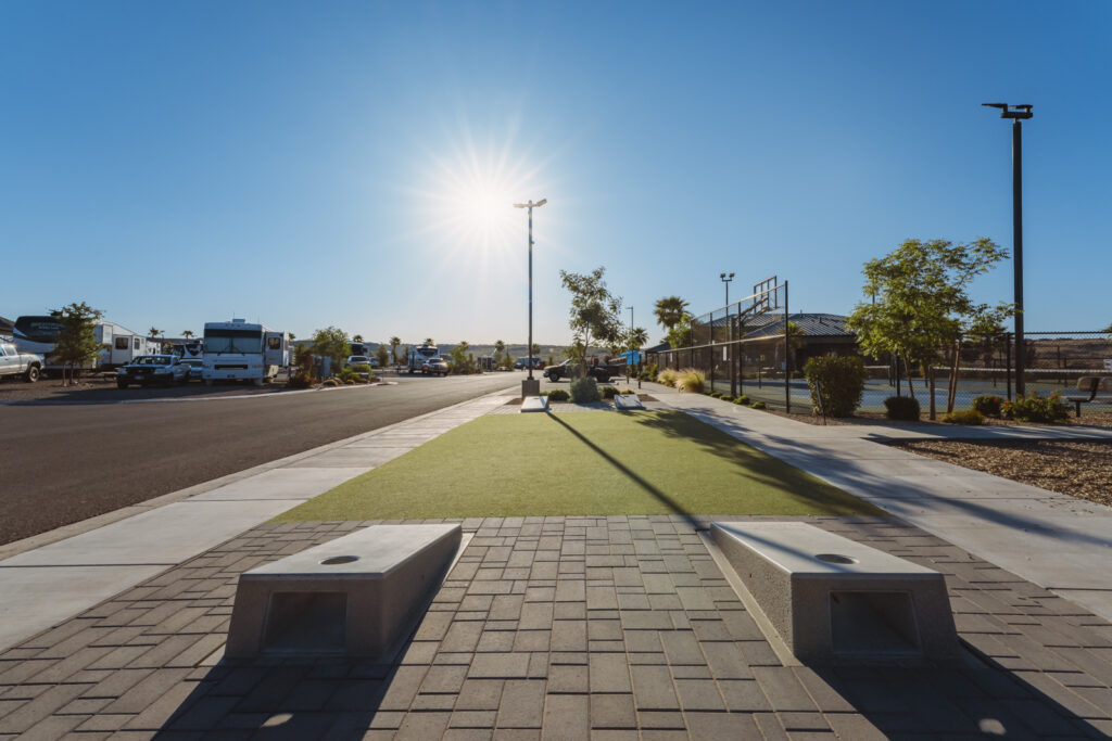 Settlers Point Luxury RV Resort offers spacious, level RV sites with full water, sewer, and 50/30-amp electric hookups. Each site includes picnic areas, WiFi, and views of Southern Utah’s red rock landscapes.