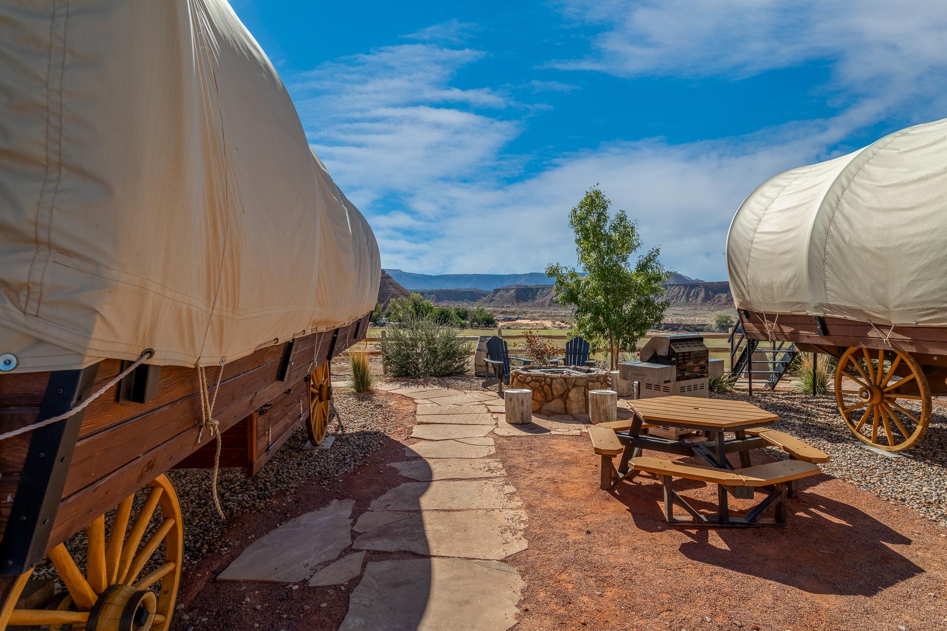 In addition to RV sites, the resort offers a range of unique glamping accommodations. Guests can choose to stay in luxury wagons, teepees, or cliff dwellings, each designed to combine comfort with a connection to the surrounding landscape.